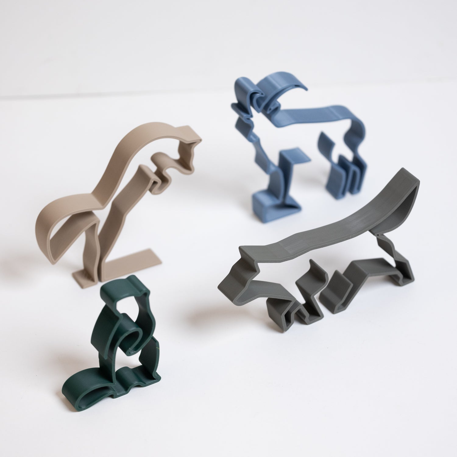 A set of silhouettes inspired by farm life: hen, horse, cow and sheep.